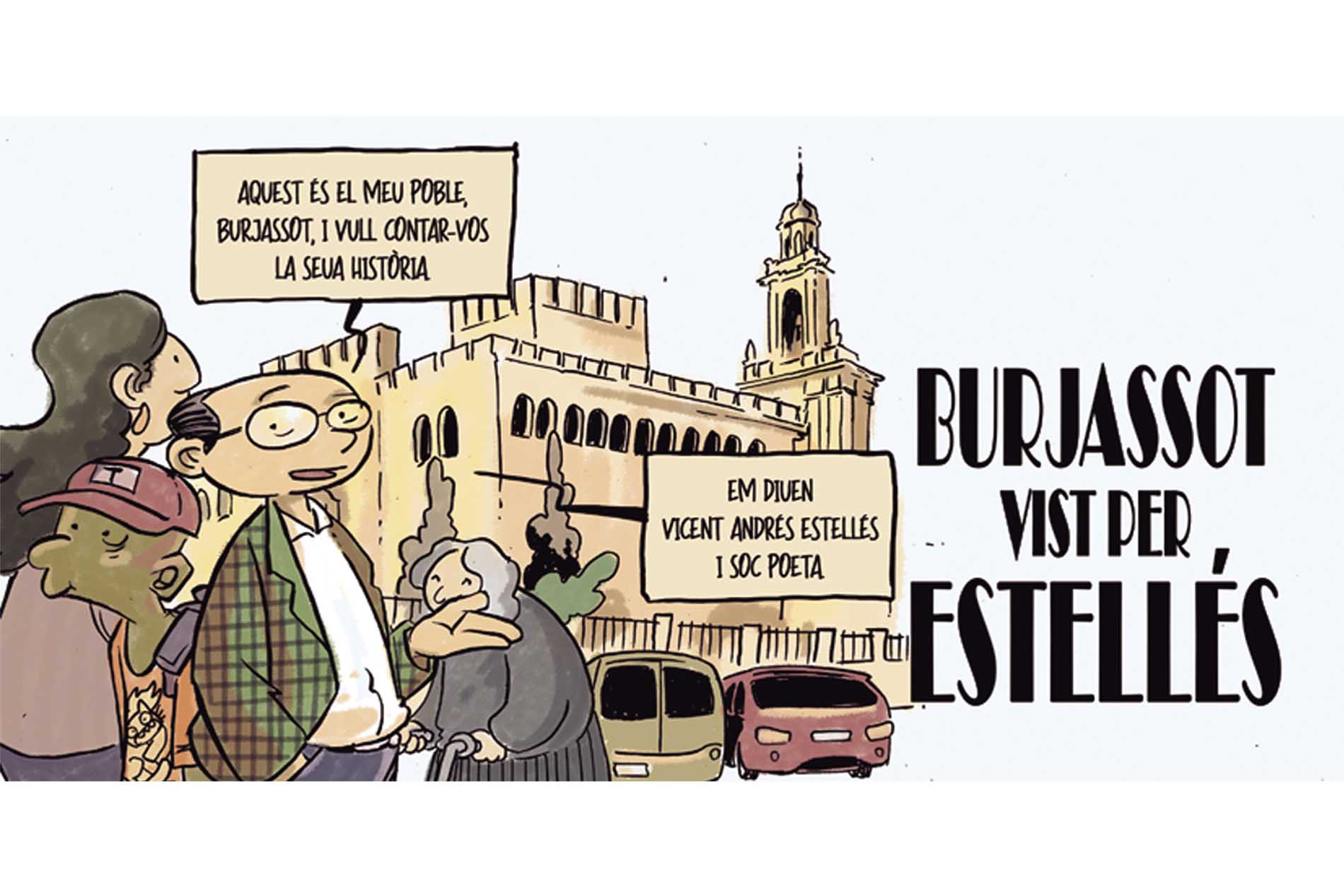 Vicent Andrés Estellés n’és el protagonista d’un còmic encarregat per l’Ajuntament de Burjassot a l’editorial Camacuc. El 22 de maig la Casa de Cultura del municipi va acollir la presentació del fanzín Burjassot vist per Estellés, un acte amenitzat pel grup de danses La Senyera.