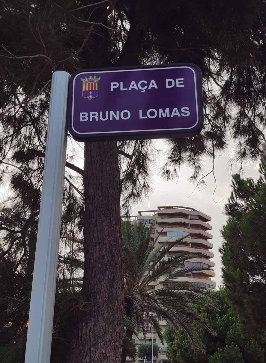 Pel canvi de dècada Bruno Lomas s’instal·là a la platja de La Pobla de Farnals, que el va acollir com sa casa durant vint anys, i que ara li dedica el parc del seu extrem sud. El 27 de juliol el ple municipal nomenà Emilio/Bruno fill adoptiu de la població i el 19 d’agost celebraren la inauguració oficial de la plaça al referent musical amb un concert homenatge. Primer hi actuà Miquel Dimoni & Mamones i en acabant Lo + Rock, el tribut oficial a Bruno Lomas amb la veu de Raül Jorques. De conversa sobre rock’n’roll amb l’alcalde Enric Palanca, explica: «Diuen que podria haver aconseguit més èxit si haguera emigrat a Barcelona o a Madrid, però ell no va voler ser altra cosa que el rocker Bruno Lomas. A mi m’agrada ‘Anoche la vi’ però triaria ‘Mi chica soñada’ perquè connecta amb la idealització que tenia per La Pobla de Farnals». De fet la cançó comença amb «Toda mi vida he vagado / para encontrar un amor, / y hoy que por fin lo he hallado / vivo en un mundo mejor». La seua companya de dècades, María Carmen Charcos, transmet la viva emoció que genera: «La memòria de Bruno està per damunt de tot. Tot el que se li faça amb dignitat, estic d’acord… 31 anys després el tinc present cada dia i sé que no el podré oblidar mai».