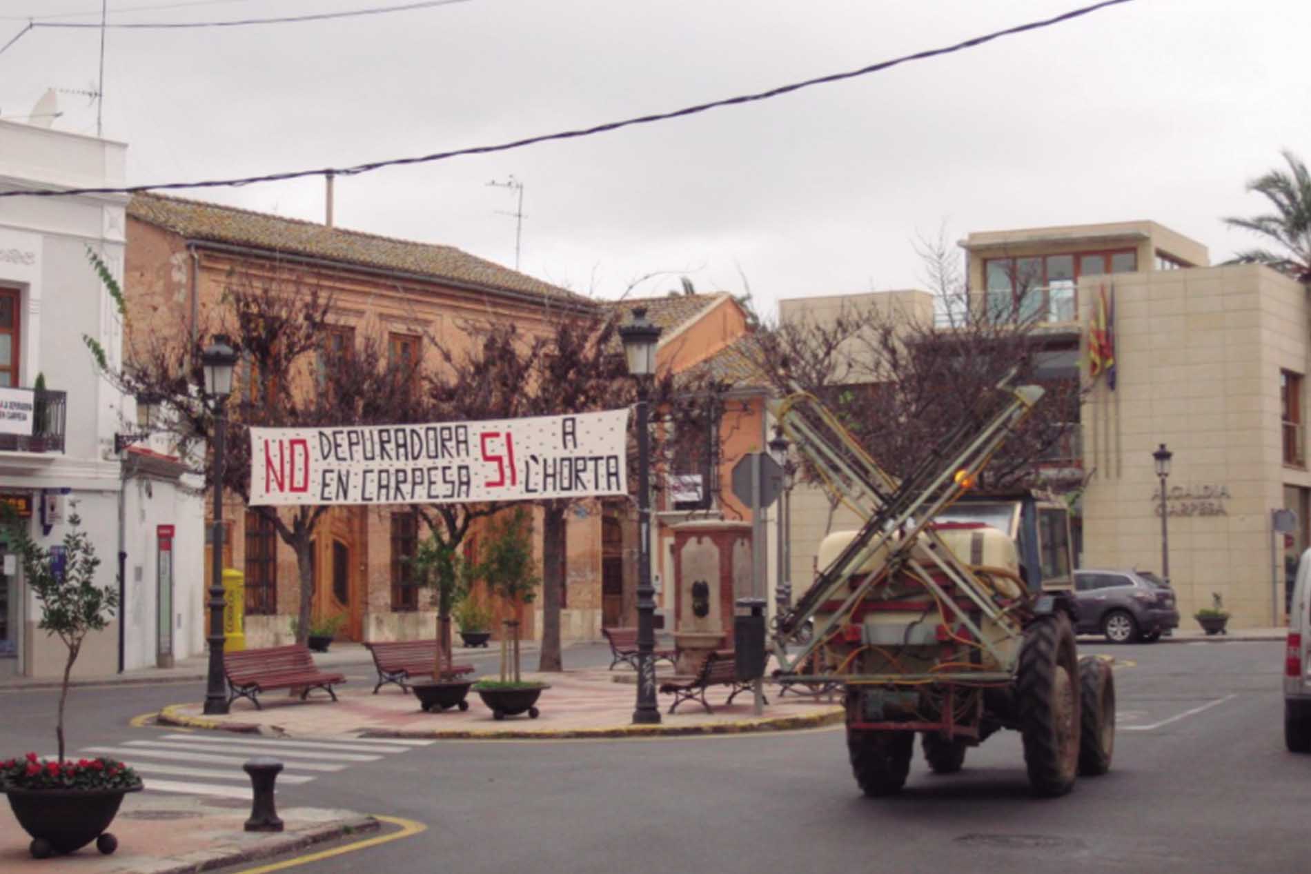 Davant d’això trobem una ciutadania que s’organitza, genera xarxes, resisteix i proposa alternatives més habitables, menys agressives, més responsables amb la població, el territori i el futur comú. Parlem amb Josepa Castells i Maite Larena, que quan el projecte de depuradora a Carpesa formaren part del primer grup actiu: «Al novembre de 2009 ens vàrem assabentar de manera casual d’un “Estudio de integración paisajística del Plan de Reserva de suelo para la implantación de la nueva EDAR del Palmaret (Valencia)”, en període de consulta pública, quan s’acabava el temps per a participar-hi. En vista del desastre que ens amenaçava, decidírem constituir la plataforma “No a la depuradora de Carpesa. Sí a l’horta” integrada pels veïns de Carpesa i Bonrepòs i Mirambell».
